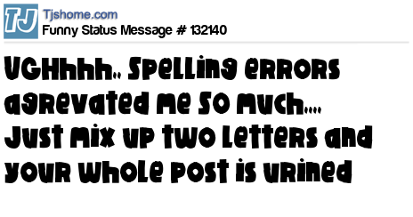 X UGHhhh,, Spelling errors agrevated me SO much,,,, Just mix up two letters and your whole post is urined