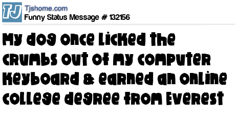 - # 159835 My dog licked the crumbs out of my computer keyboard & earned an online college degree from the University of Phoenix.
