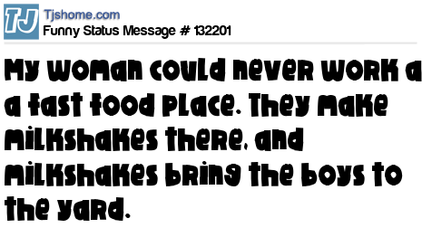 X says My woman could never work at a fast food place. They make milkshakes there, and milkshakes bring the boys to the yard.