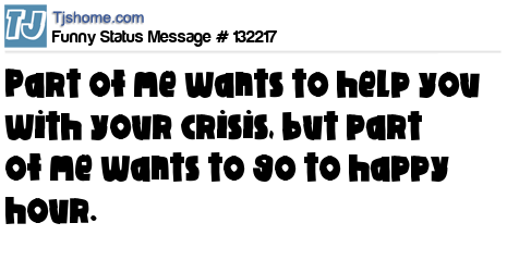 X says Part of me wants to help you with your crisis, but part of me wants to go to happy hour.