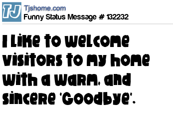 - # 109237 When I visit a friend who greets me with "make yourself at home," I kick him out of the house because I hate visitors!