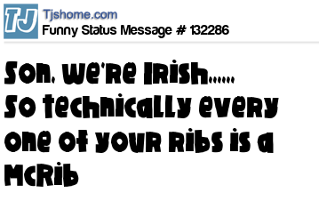 X Son, we're Irish,,,,,, So technically every one of your ribs is a McRib