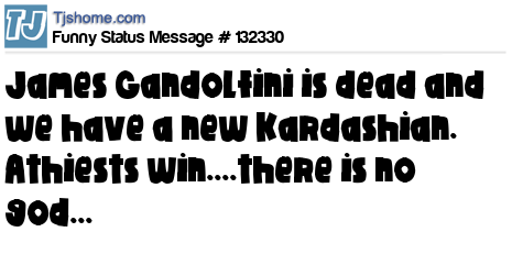 X says James Gandolfini is dead and we have a new Kardashian. Athiests win....there is no god...