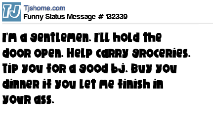 X says I'm a gentlemen. I'll hold the door open. Help carry groceries. Tip you for a good bj. Buy you dinner if you let me finish in your ass.