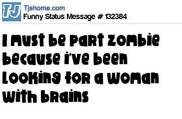 - # 172126 Ladies, if you want a man you loves you for your brains and not your body, then date a zombie.