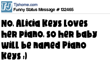 X No, Alicia Keys loves her piano, so her baby will be named Piano Keys ;)