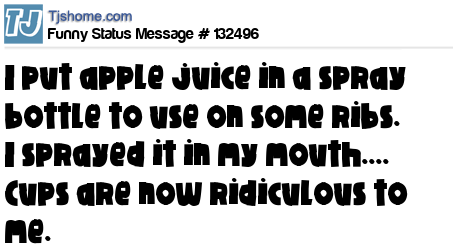 X I put apple juice in a spray bottle to use on some ribs. I sprayed it in my mouth.... Cups are now ridiculous to me.
