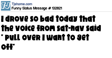 X says I drove so bad today that the voice from sat-nav said " pull over I want to get off"