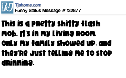 X This is a pretty shítty flash mob. It's in my living room, only my family showed up, and they're just telling me to stop drinking.