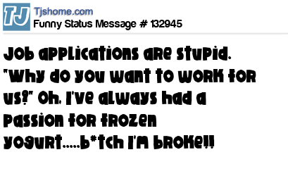 X says Job applications are stupid. "Why do you want to work for us?" Oh, I've always had a passion for frozen yogurt.....b*tch I'm broke!!