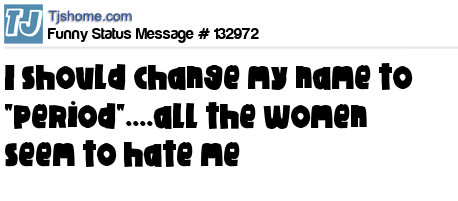 X says i should change my name to "period"....all the women seem to hate me