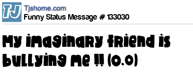 - # 3726 Sometimes I wonder what became of the imaginary friend I had as a kid... Did he go to imaginary college? Is he married to an imaginary woman or have imaginary kids? I should google his punk ass...