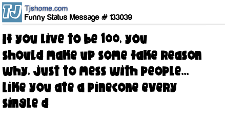 - # 133409 If I live to be 100, I'm going to make up some fake reason why, just to mess with people... like claim I ate a pinecone every single day.