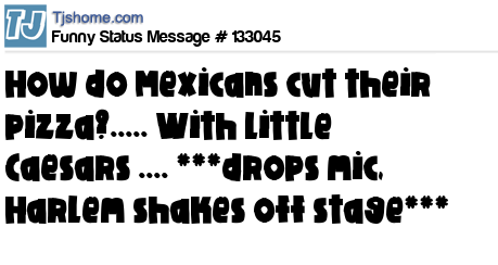 - # 127938 How do Mexicans cut their pizza? With Little Ceasars *drops mic, Harlem shakes off stage*