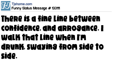 X says There is a fine line between confidence, and arrogance. I walk that line when I'm drunk, swaying from side to side.