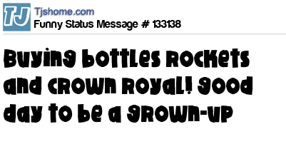 X says buying bottles rockets and crown royal! good day to be a grown-up
