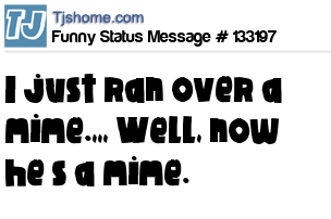 X I just ran over a mime.,,, Well, now he’s a mime.