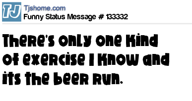 X says There's only one kind of exercise I know and its the beer run.