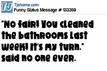 - # 187690 "Hey! No fair! You cleaned the bathrooms last week! It's my turn!" said no one ever.