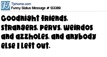 X Goodnight friends, strangers, pervs, weirdos and azzholes, and anybody else I left out.