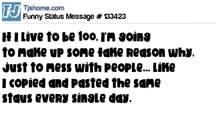 X says If I live to be 100, I'm going to make up some fake reason why, just to mess with people... like I copied and pasted the same staus every single day.