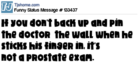 X If you don't back up and pin the doctor the wall when he sticks his finger in, it's not a prostate exam.