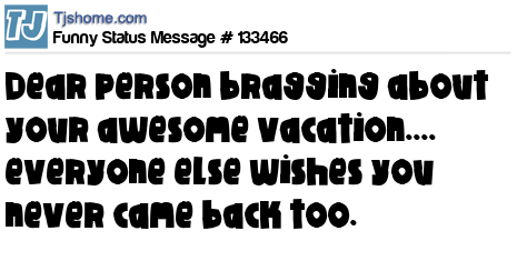 X says Dear person bragging about your awesome vacation.... everyone else wishes you never came back too.
