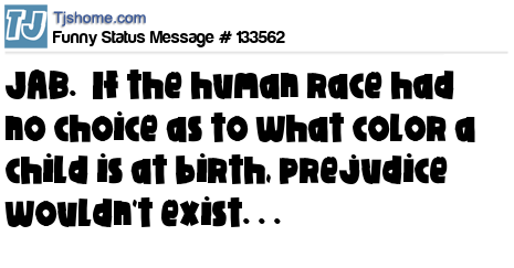 X says JAB. If the human race had no choice as to what color a child is at birth, prejudice wouldn't exist. . .