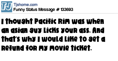X says I thought Pacific Rim was when an asian guy licks your ass. And that's why I would like to get a refund for my movie ticket.