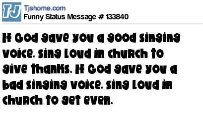 - # 152745 If God gave you a good singing voice you should sing loud in church to give thanks. If God gave you a bad singing voice you should sing loud in church to get even.