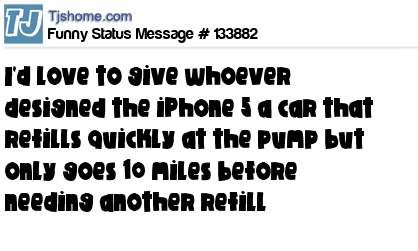 X says I'd love to give whoever designed the iPhone 5 a car that refills quickly at the pump but only goes 10 miles before needing another refill