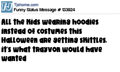 X all the kids wearing hoodies instead of costumes this Halloween are getting skittles, it's what trayvon would have wanted
