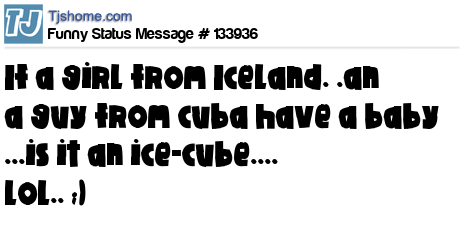 X says If a girl from Iceland. .an a guy from cuba have a baby ...is it an ice-cube.... lol.. ;)