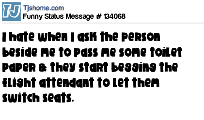 X says I hate when I ask the person beside me to pass me some toilet paper & they start begging the flight attendant to let them switch seats.
