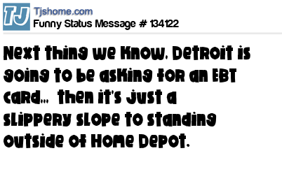 X Next thing we know, Detroit is going to be asking for an EBT card,,, then it's just a slippery slope to standing outside of Home Depot.