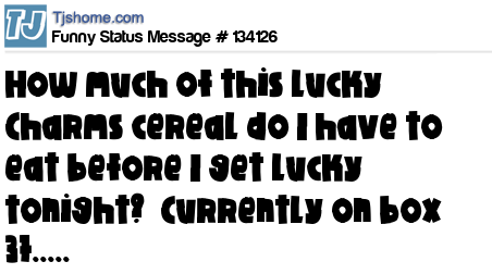 X says How much of this Lucky Charms cereal do I have to eat before I get lucky tonight? Currently on box 37.....