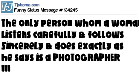 X The only person whom a woman listens carefully & follows Sincerely & does exactly as he says is a PHOTOGRAPHER !!!