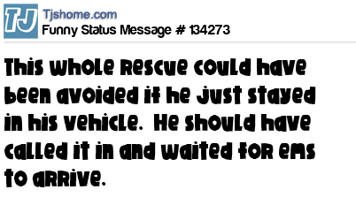 X This whole rescue could have been avoided if he just stayed in his vehicle. He should have called it in and waited for ems to arrive.