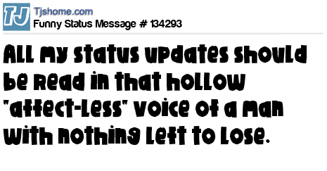 X All my status updates should be read in that hollow "affect-less" voice of a man with nothing left to lose.
