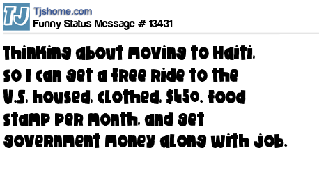X says Thinking about moving to Haiti, so I can get a free ride to the U.S, housed, clothed, $450. food stamp per month, and get government money along with job.