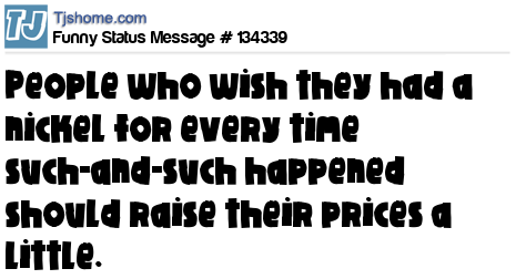 X says People who wish they had a nickel for every time such-and-such happened should raise their prices a little.