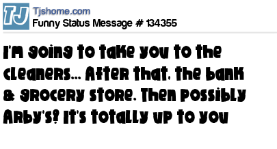X I'm going to take you to the cleaners... After that, the bank & grocery store. Then possibly Arby's? It's totally up to you