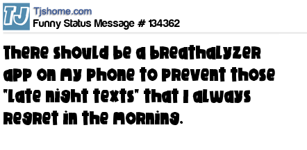 - # 134364 there should be a breathalyzer app on my phone to prevent thos late night texts that I always regret sending.