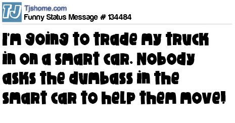 X says I'm going to trade my truck in on a smart car. Nobody asks the dumbass in the smart car to help them move!