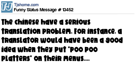 X says The chinese have a serious translation problem. For instance, a translator would have been a good idea when they put "poo poo platters" on their menus....