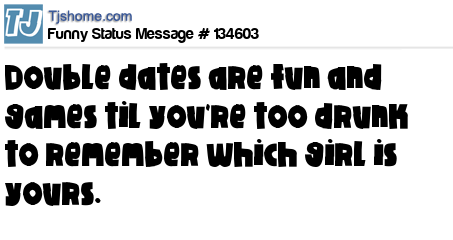 X says Double dates are fun and games til you're too drunk to remember which girl is yours.