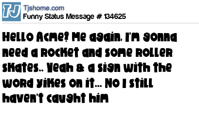 X Hello Acme? Me again, I'm gonna need a rocket and some roller skates.. Yeah & a sign with the word yikes on it... No I still haven't caught him