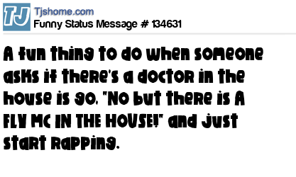 X says A fun thing to do when someone asks if there's a doctor in the house is go, "No but there is A FLY MC IN THE HOUSE!" and just start rapping.