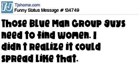 - # 186102 Those Blue Man Group guys need to find some women. I didn’t realize it could spread like that.