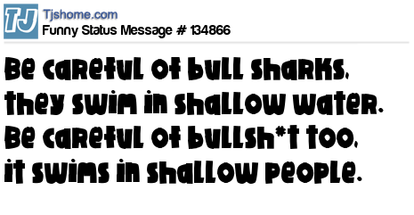 X Be careful of bull sharks, they swim in shallow water. Be careful of bullsh*t too, it swims in shallow people.